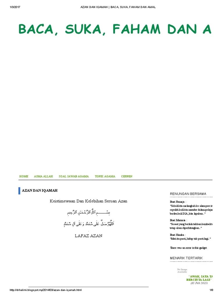 Iqamat Doa Selepas Azan Rumi - Maya Shop Buku Mari Sembahyang Lelaki Rm 5 Penulis Facebook